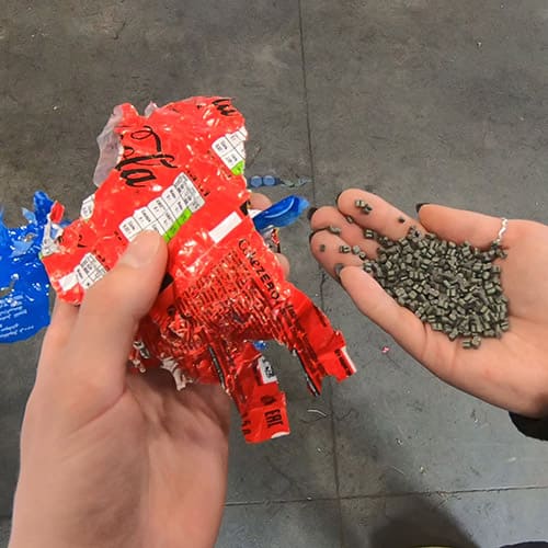 На грануляцию поступают отходы уже в измельченном и очищенном состоянии. Каждый вид пластика имеет свою специфику переработки, температурные показатели плавления, необходимую плотность и т.д. Во время плавления и перемешивания в экструдеры полимеров к основному материалу могут добавляться пластификаторы, красители, модификаторы и иные дополнительные включения, улучшающие качество конечного продукта. При переработке пленки после измельчения ее поддают процессу агломерации на агломераторах, во время которого легкие и воздушные хлопья превращается в сыпучие плотные частицы. Последние обладают высокой насыпной плотностью и поэтому более эффективно и качественно проходят процесс экструзии и гранулирования.