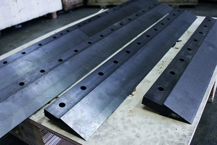 Ножи гильотины изготавливаются из высокопрочной стали и имеют специальную заточку, поэтому вход лезвия при разрезании происходит плавно, а срез получается ровным и не имеет заусенец. Гидравлический привод обладает высокой мощностью и прекрасно справляется даже с материалами высокой плотности.
